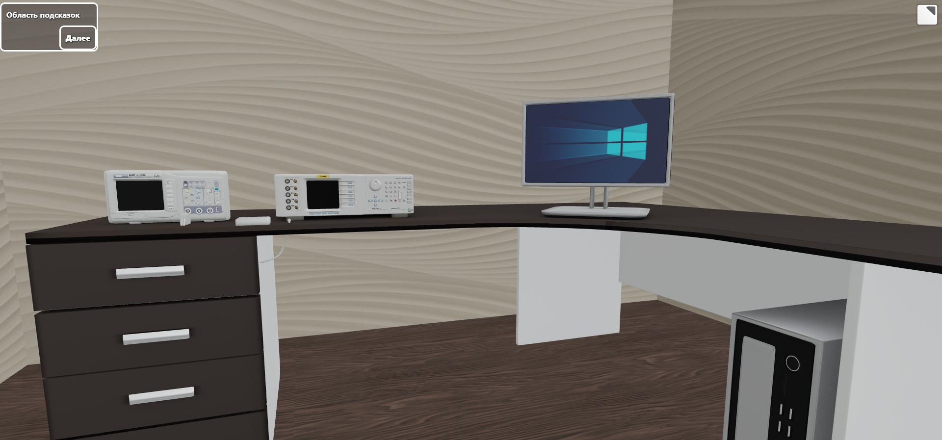 ЧЕМ ПОЛЕЗЕН КУРСВ электронном комплексе необходимый объем теоретического материала сочетается с виртуальной имитацией работы с реальным прибором. Теория сопровождается интерактивными иллюстрациями, позволяющими с легкостью усвоить принцип работы установки. В разделе «Практика» представлены интерактивные задания, в которых смоделирована реальная процедура работы установки. Пользователь виртуально выполняет необходимые действия, предусмотренные традиционной методикой поверки. Для проверки знаний, полученных при изучении теоретического материала, предлагается пройти итоговое тестирование. Комплекс является важным практическим этапом, предшествующим работе с настоящим прибором. ЭУМК разработан в двух основных версиях: